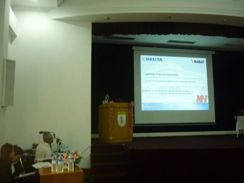 The seminar was a two-part event. The first part was presented by Mr Kevin Neo from Mun Hean Singapore, on the topic “Lightning Concepts and International Standards.” Mr Neo shared his expert knowledge about lightning forming and explained at length about the lightning protection standards in accordance with NFC 17 120 and IEC 62 305. The second part, “Lightning Protection Solutions” was presented by Ms Wit Yi Toe, Senior Manager of Mun Hean Myanmar Rep Office, who explained how direct and indirect lightning protection are accomplished. The highlight of the seminar was the case-study presentation of the application of French-based, Helita E.S.E Lightning Protection solutions in notable reference projects around the world. Also, was the presentation of Hakel Surge Protection Devices are designed in tandem to provide the complete lightning protection solution.
