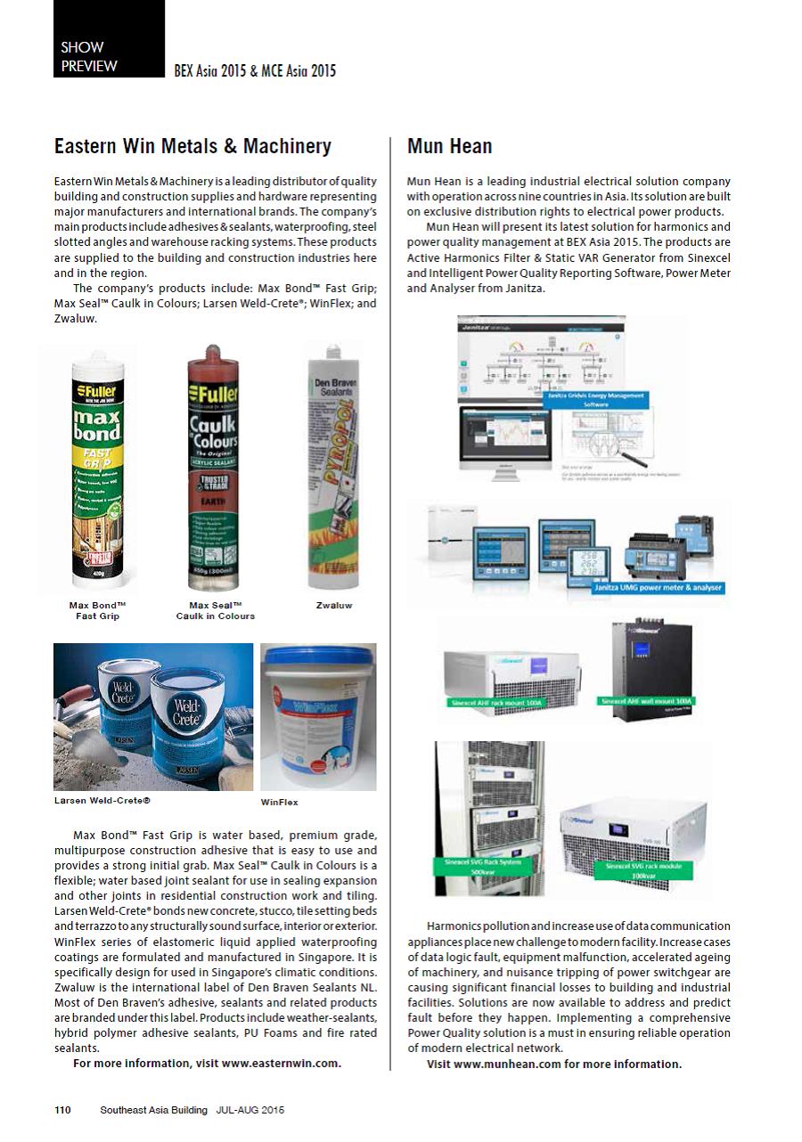 The Mun Hean showcase was also featured in the trade magazine ‘Southeast Asia Building – Jul/Aug2015’ issue. The magazine is a bi-monthly issue, targeting building design, architecture and engineering consultant in the Asia region.
